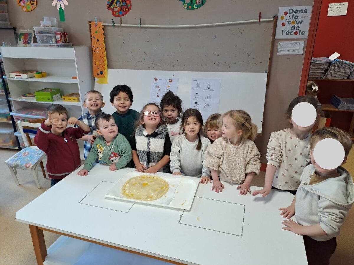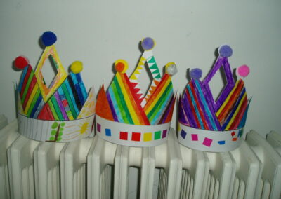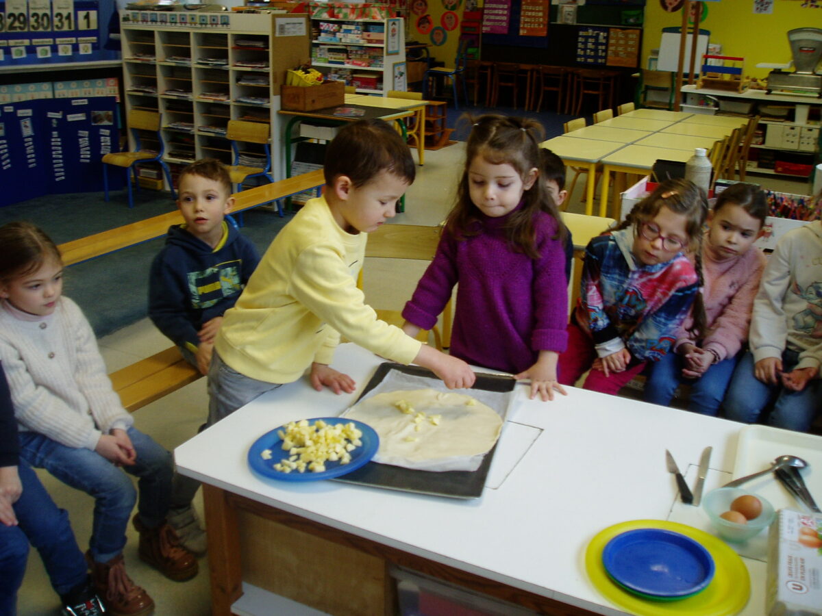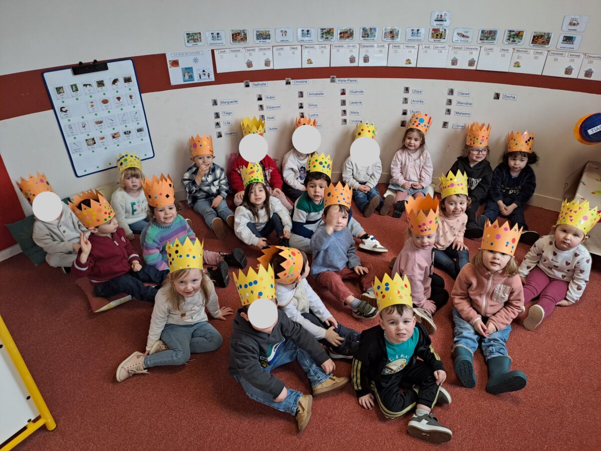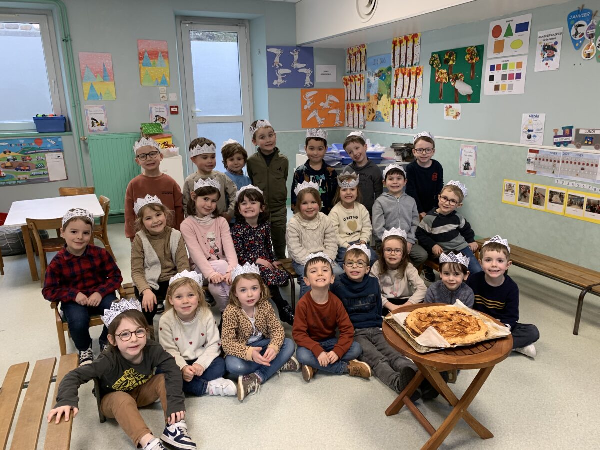 Le vendredi 30 janvier, tous les élèves des trois classes se sont retrouvés pour partager la galette des rois. Auparavant, chaque classe avait préparé deux galettes. Chaque élève avait également confectionné une couronne.