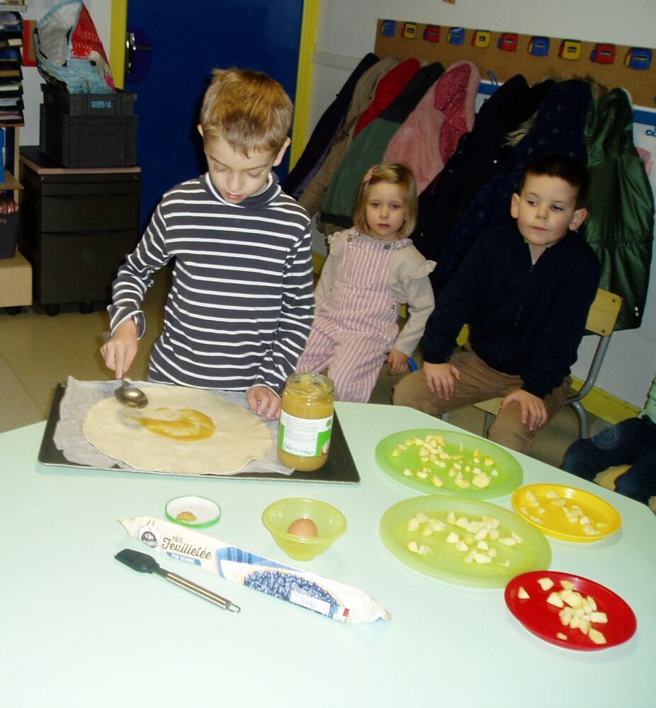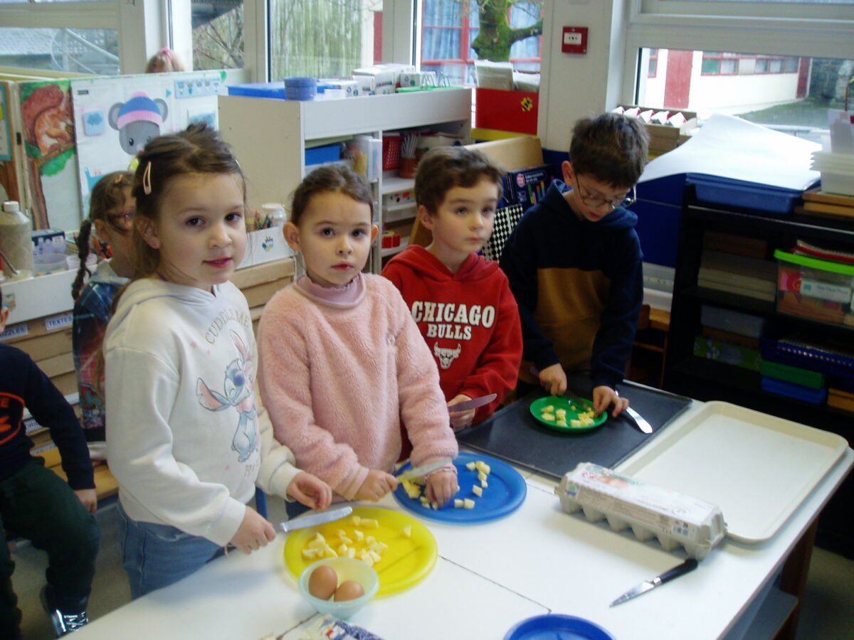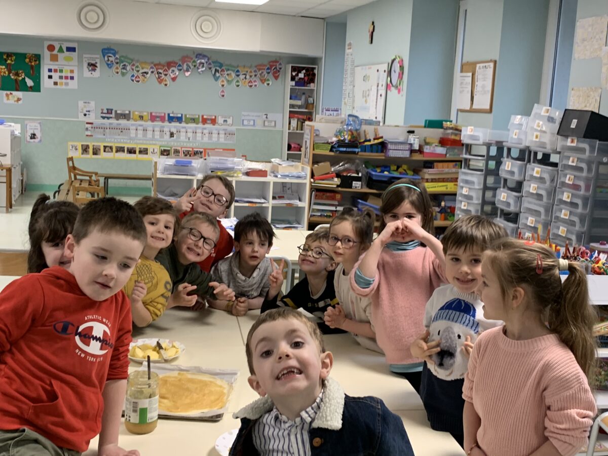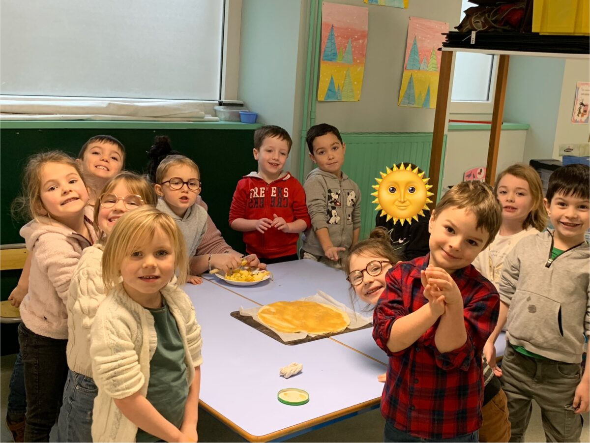 Le vendredi 30 janvier, tous les élèves des trois classes se sont retrouvés pour partager la galette des rois. Auparavant, chaque classe avait préparé deux galettes. Chaque élève avait également confectionné une couronne.
